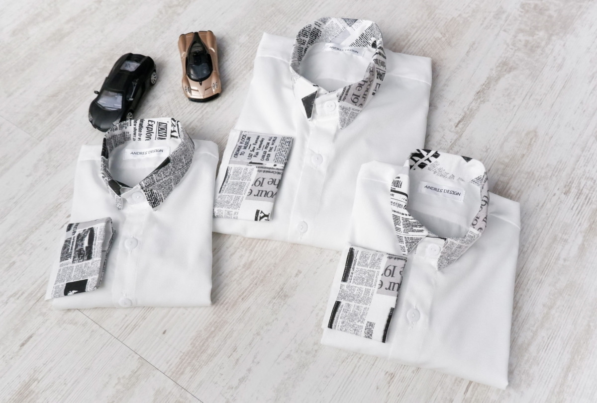 Camasi Tata Fii Albe cu Imprimeu Ziar
