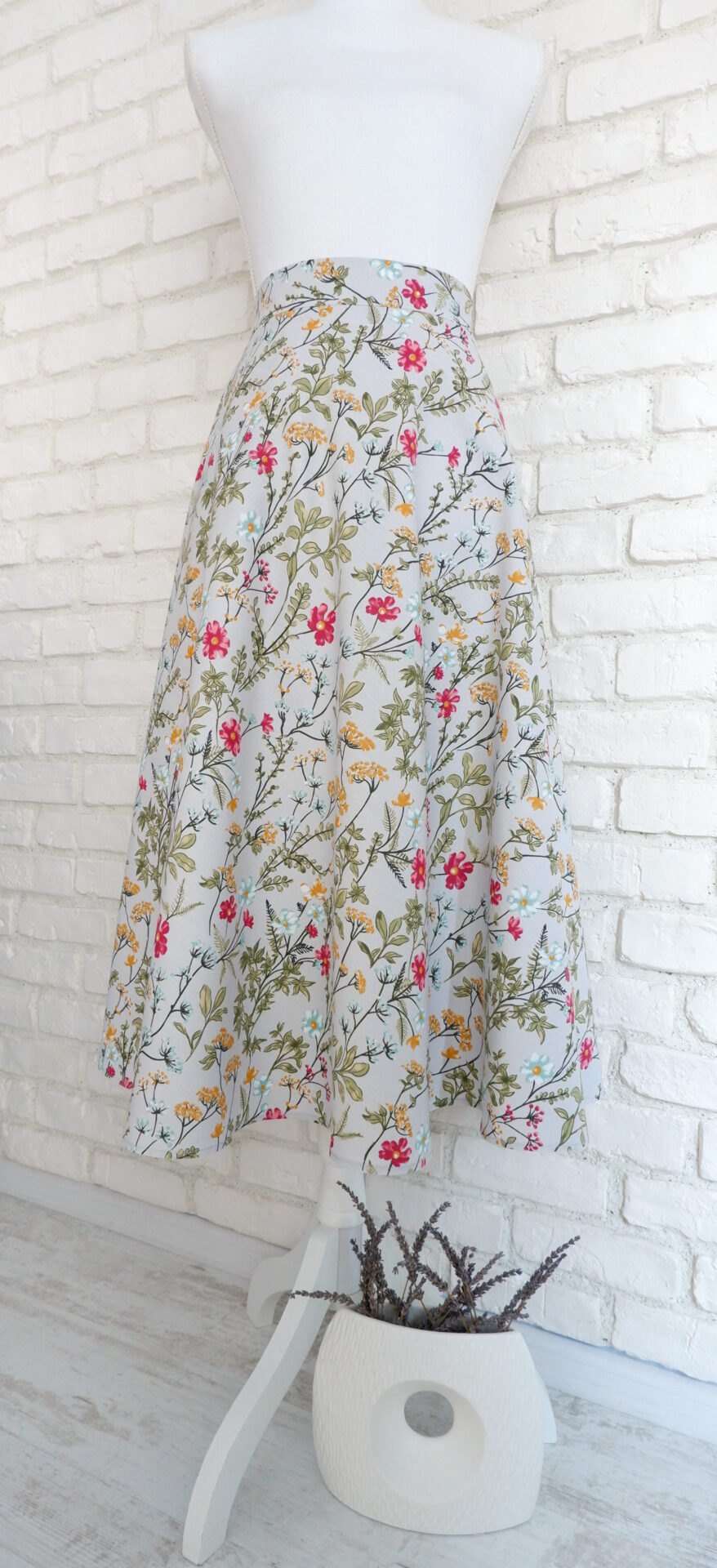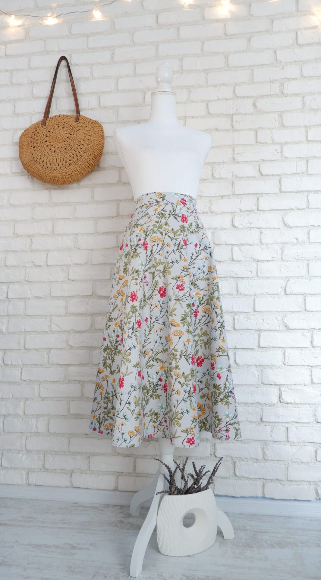 Fusta cu imprimeu flori delicate de camp, creata pe masurile tale din materiale naturale.