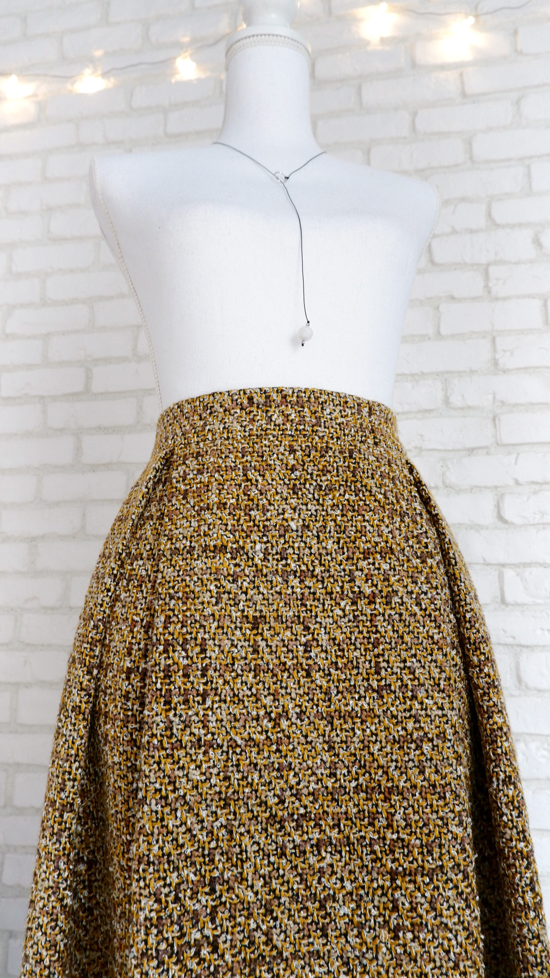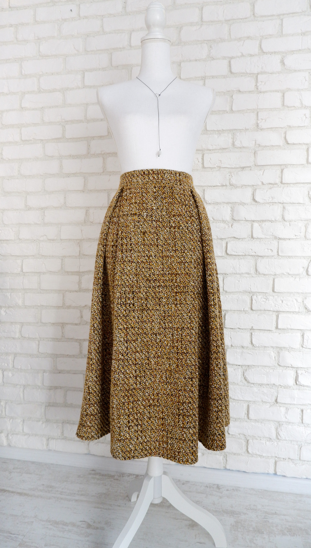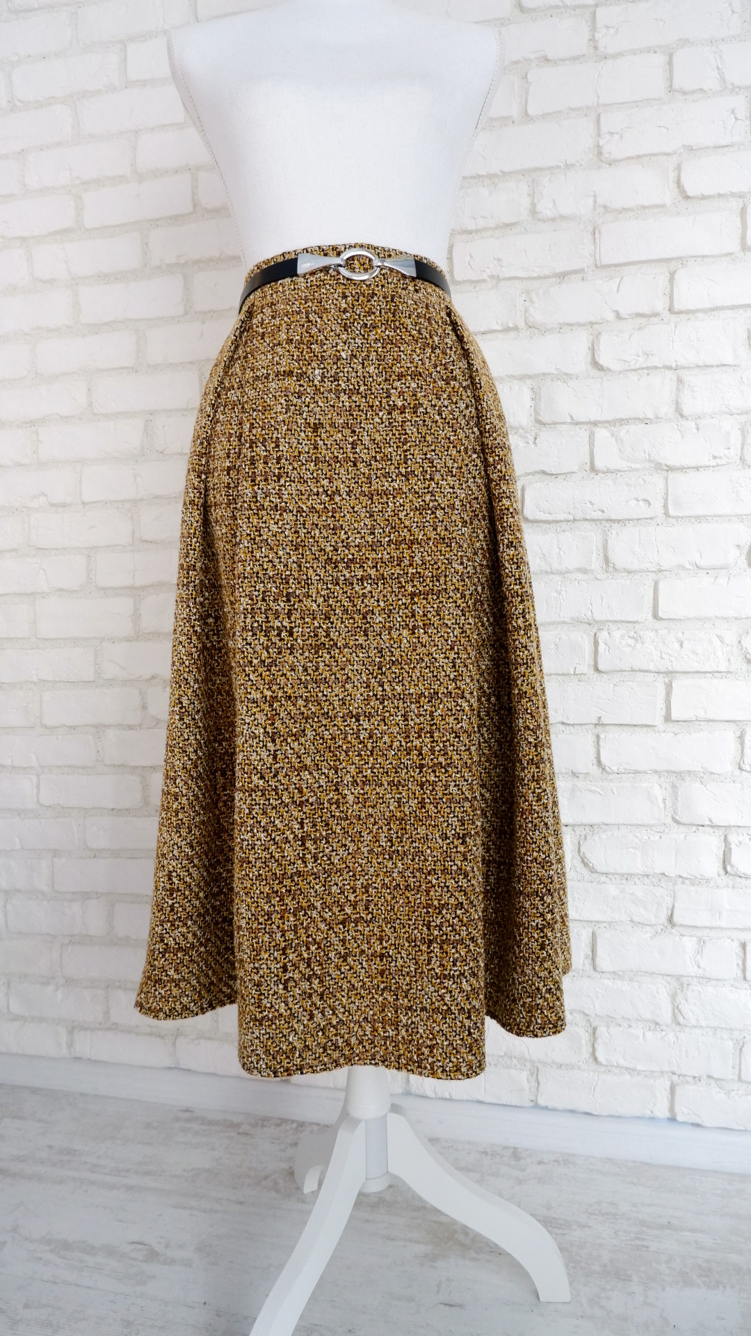 Fusta cu Pliuri Stofa Chanel Maro Mustar