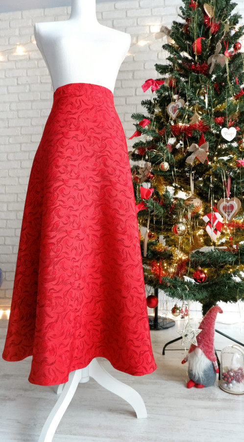 Fusta Lunga Eleganta Jacquard Rosu