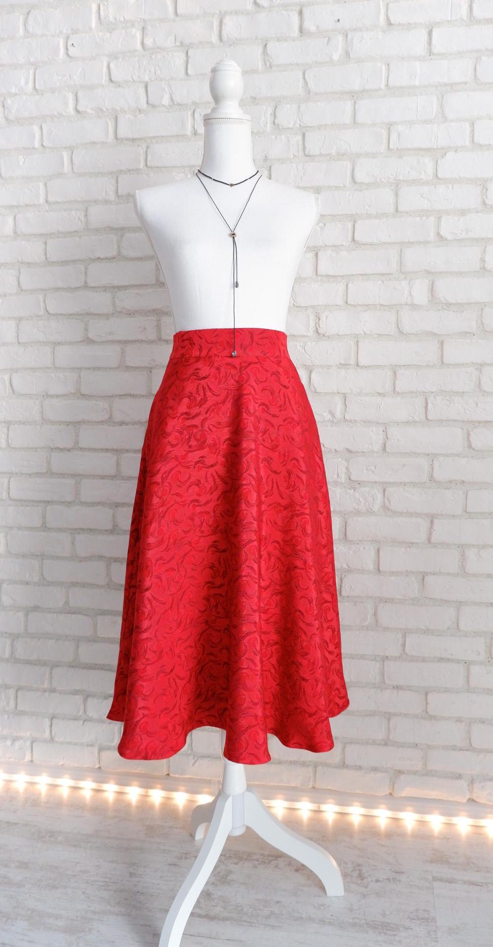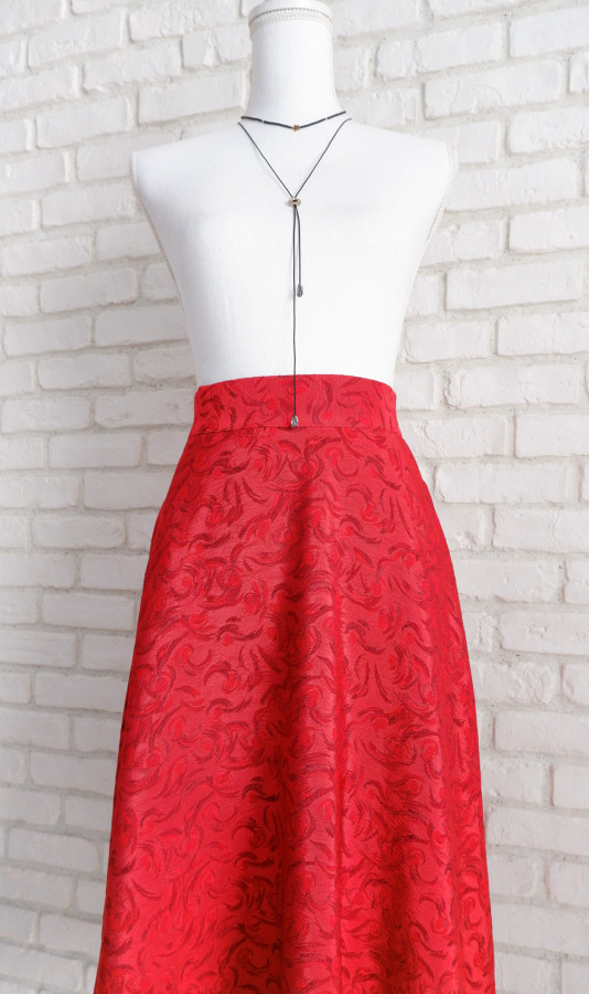 Fusta Midi Eleganta Jacquard Rosu