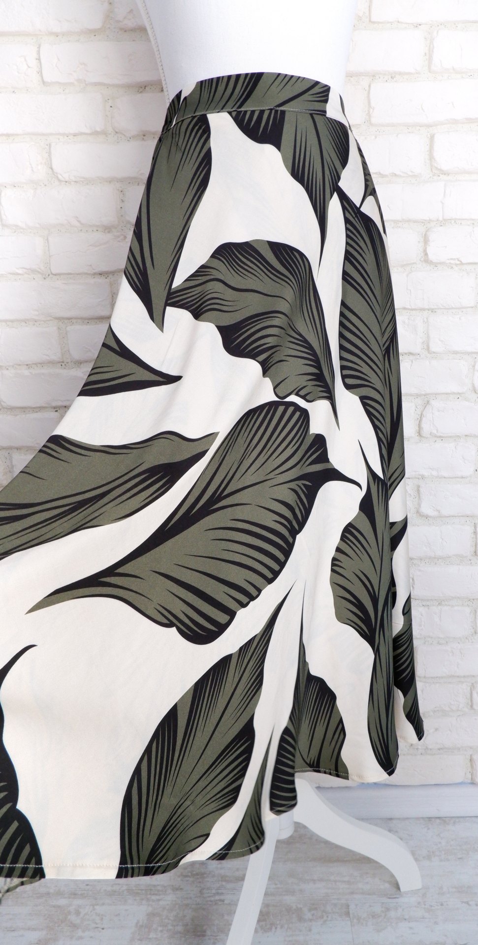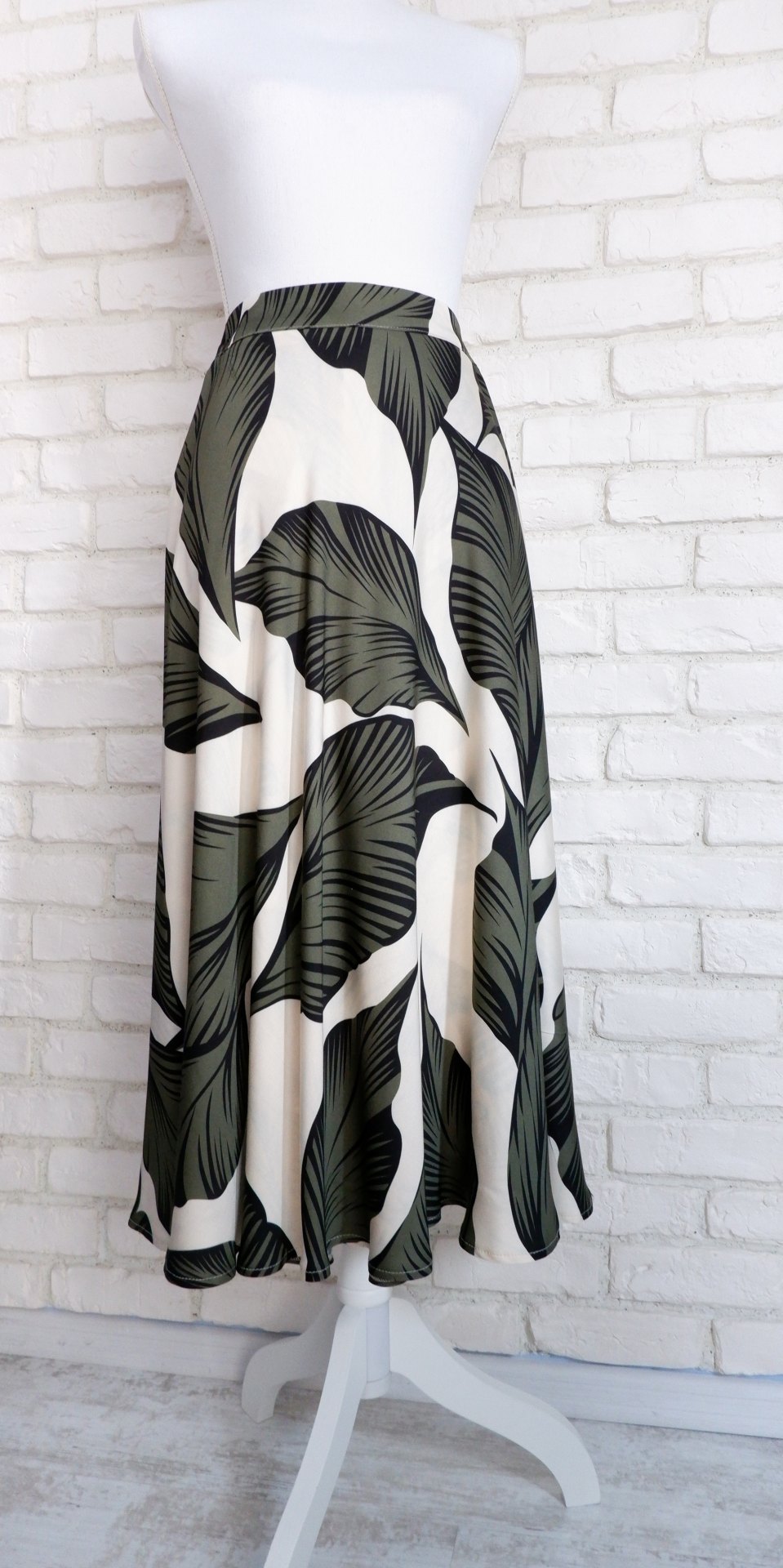 Fusta Vaporoasa Frunze Crem Kaki