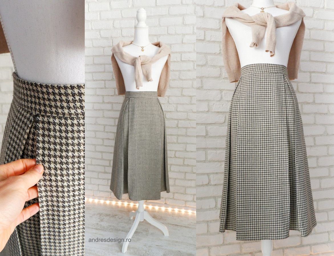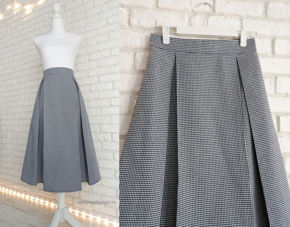 Stofa carouri mici negru cu alb – stofa lana cu poliester, usor de calcat, perfecta pentru modelele plisate, avand o structura putin mai rigida
