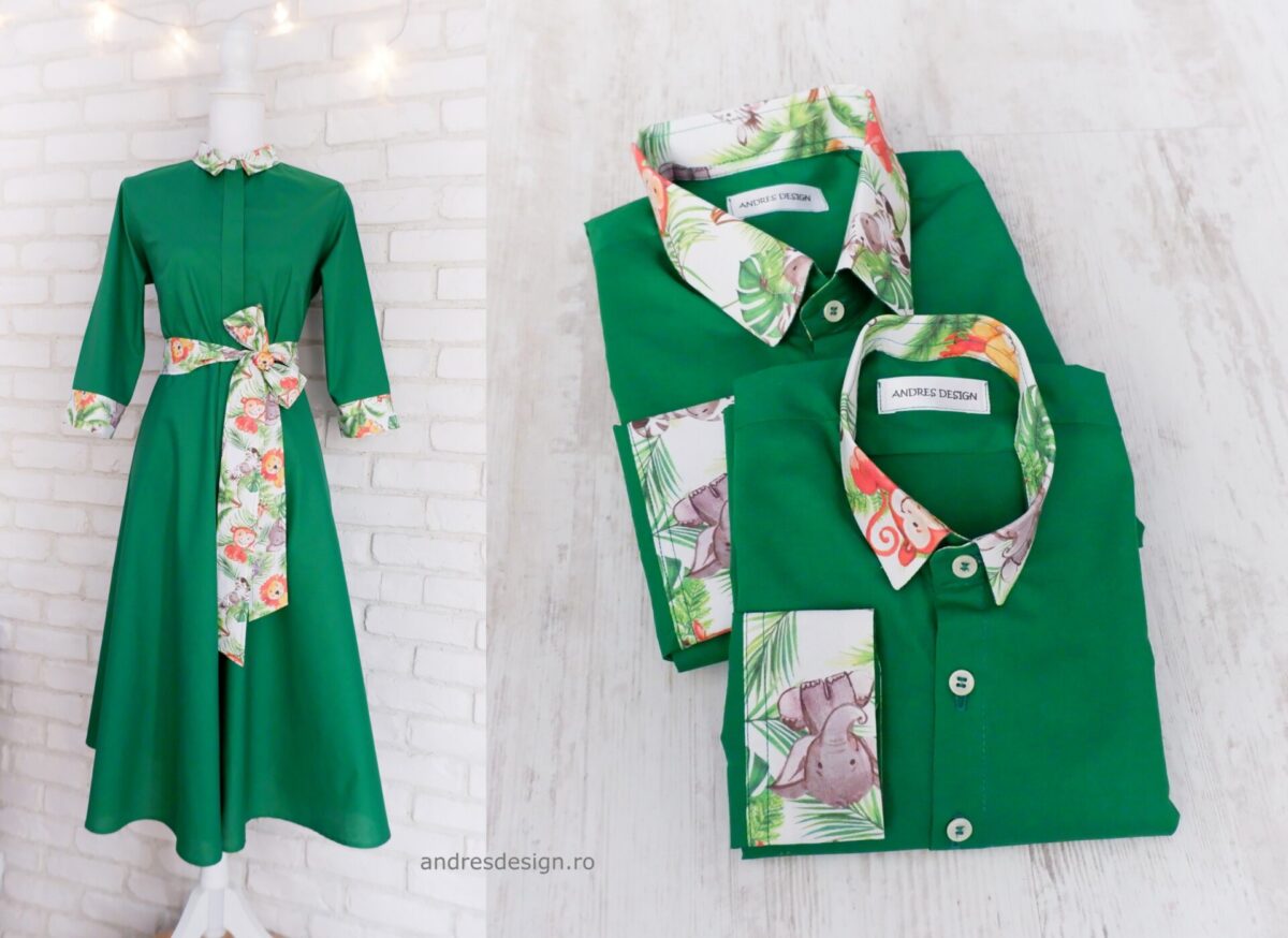 Verde – bumbac, material fin, moale (se poate combina cu imprimeuri haioase pentru buzunare sau mansete)