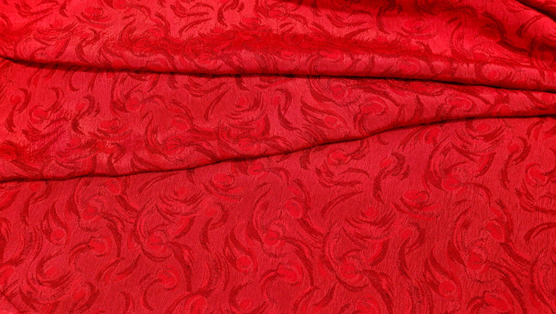 Rosu – jacquard satinat, material elegant, fluid, netransparent, usor lucios
