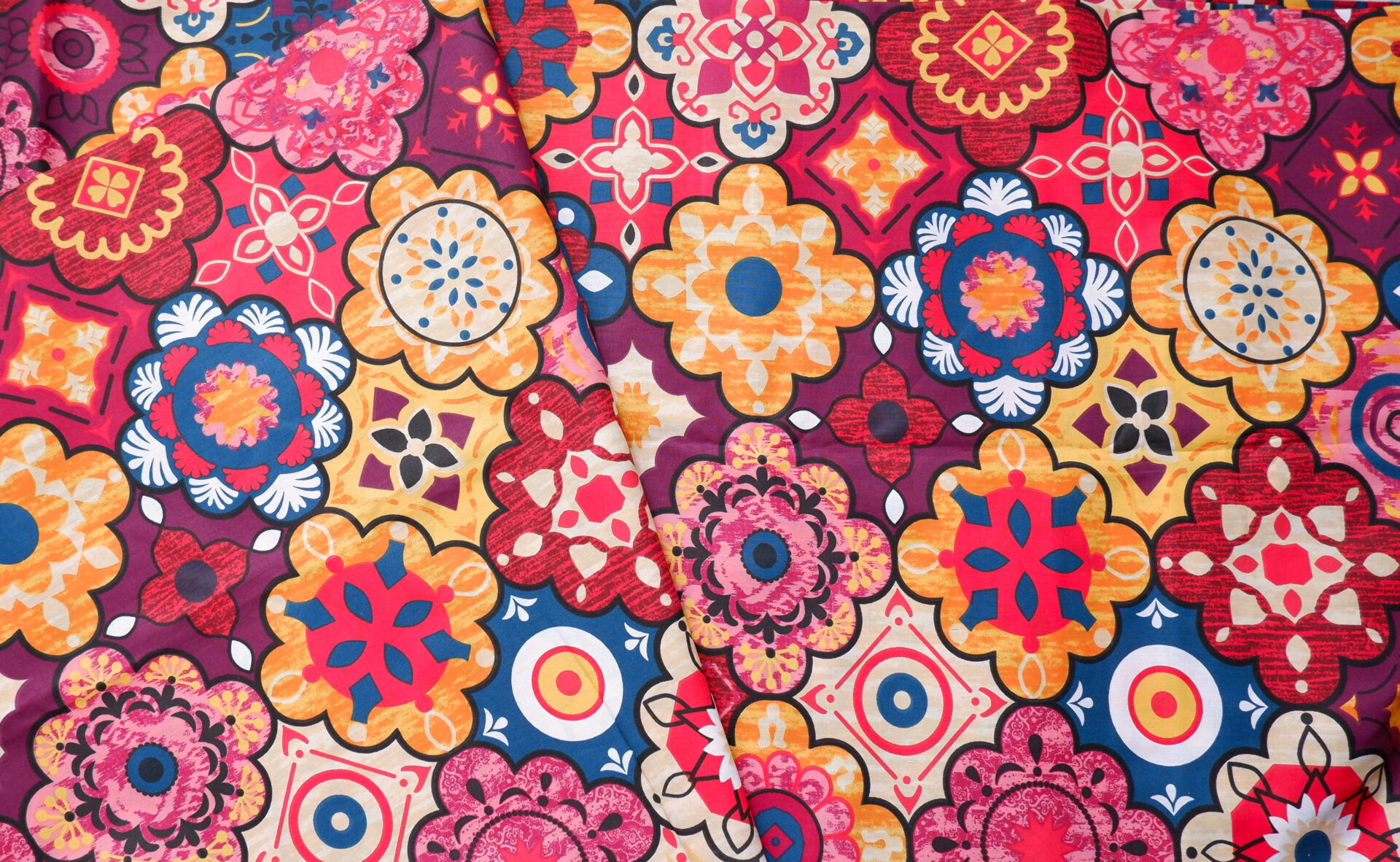 NOU: Imprimeu oriental rosu grena – panza bumbac fina, moale, foarte placuta la purtat si usor de calcat, netransparenta