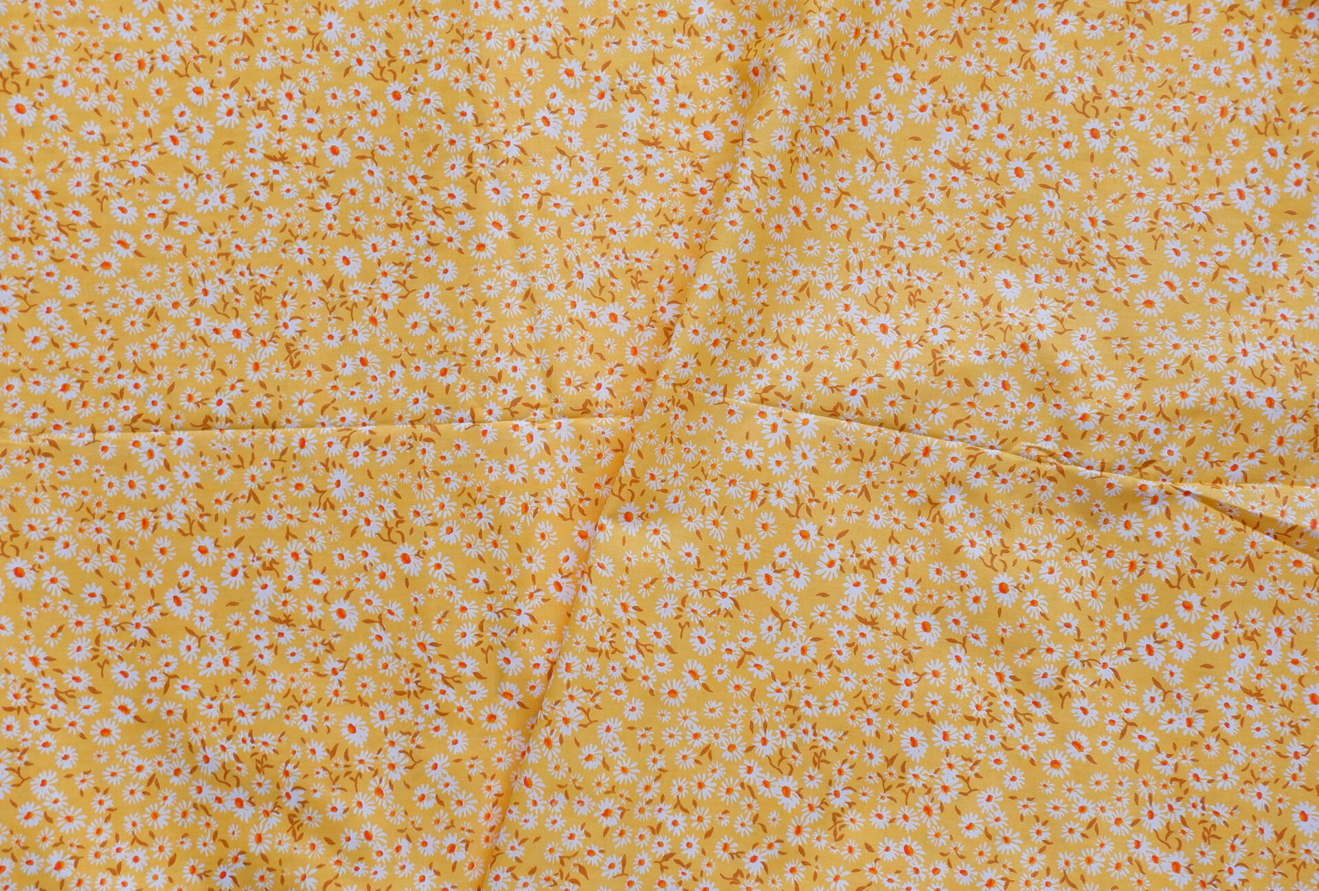 Flori ocru – bumbac fin de foarte buna calitate, moale si placut la purtat, usor de calcat, netransparenta