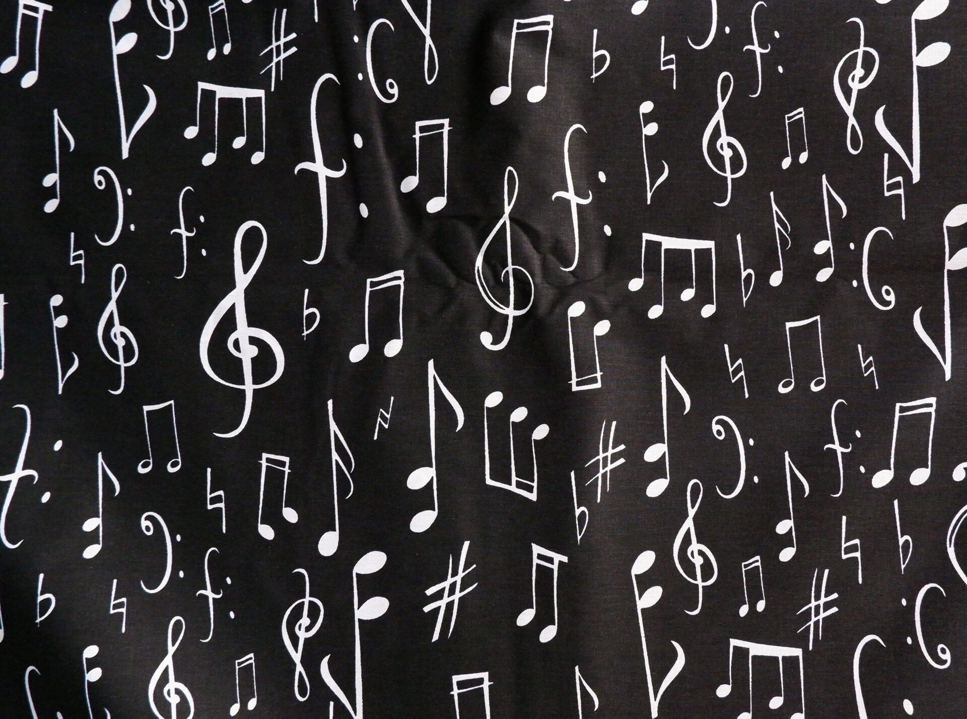 NOU: Note muzicale negru – panza bumbac moale, fina, foarte placuta la purtat si usor de calcat, netransparenta