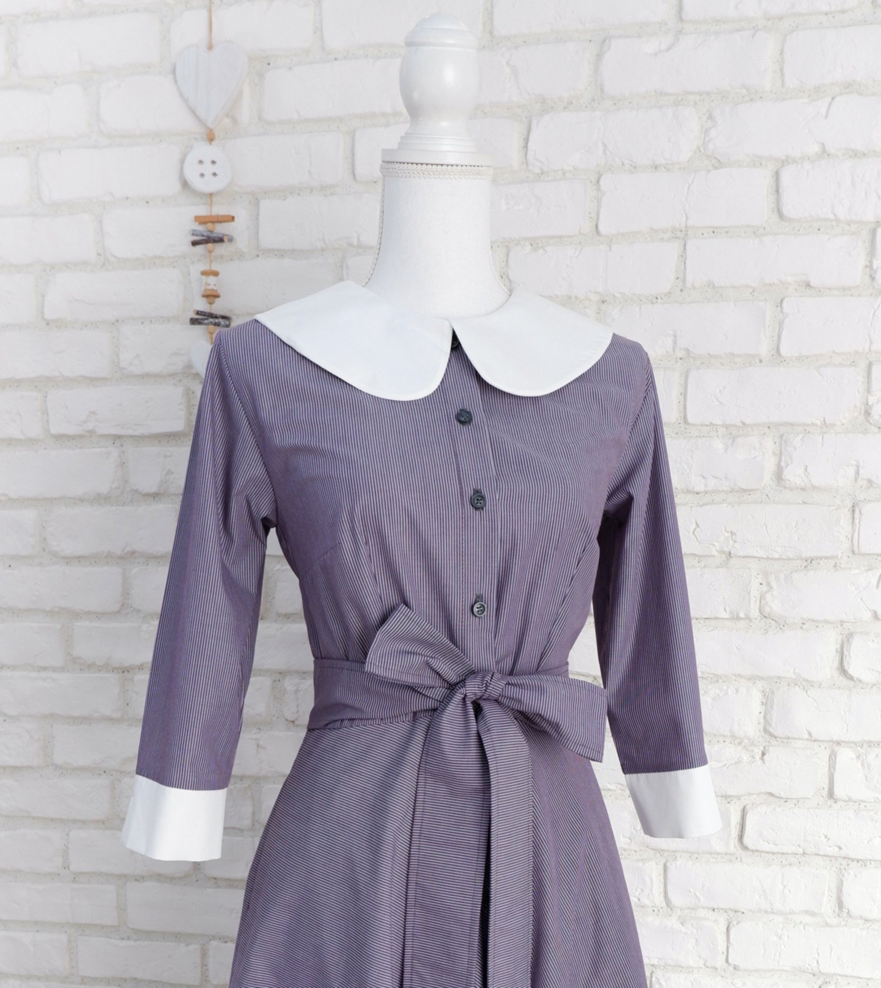 NOU: Albastru denim cu dungi subtiri albe si insertii grena discrete  – bumbac moale, fin la atingere si foarte placut la purtat, usor de calcat