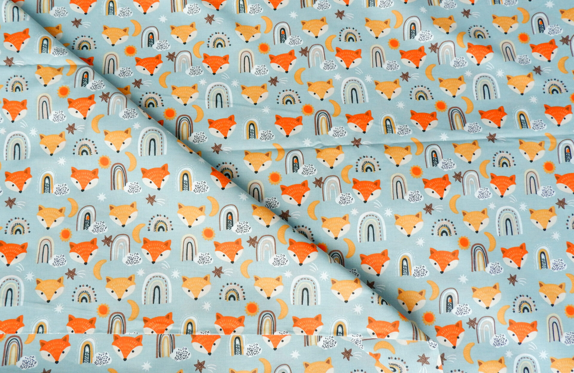 NOU: Vulpi pe fond bleu turcoaz – panza bumbac plina, moale, foarte placuta la purtat si usor de calcat, netransparenta