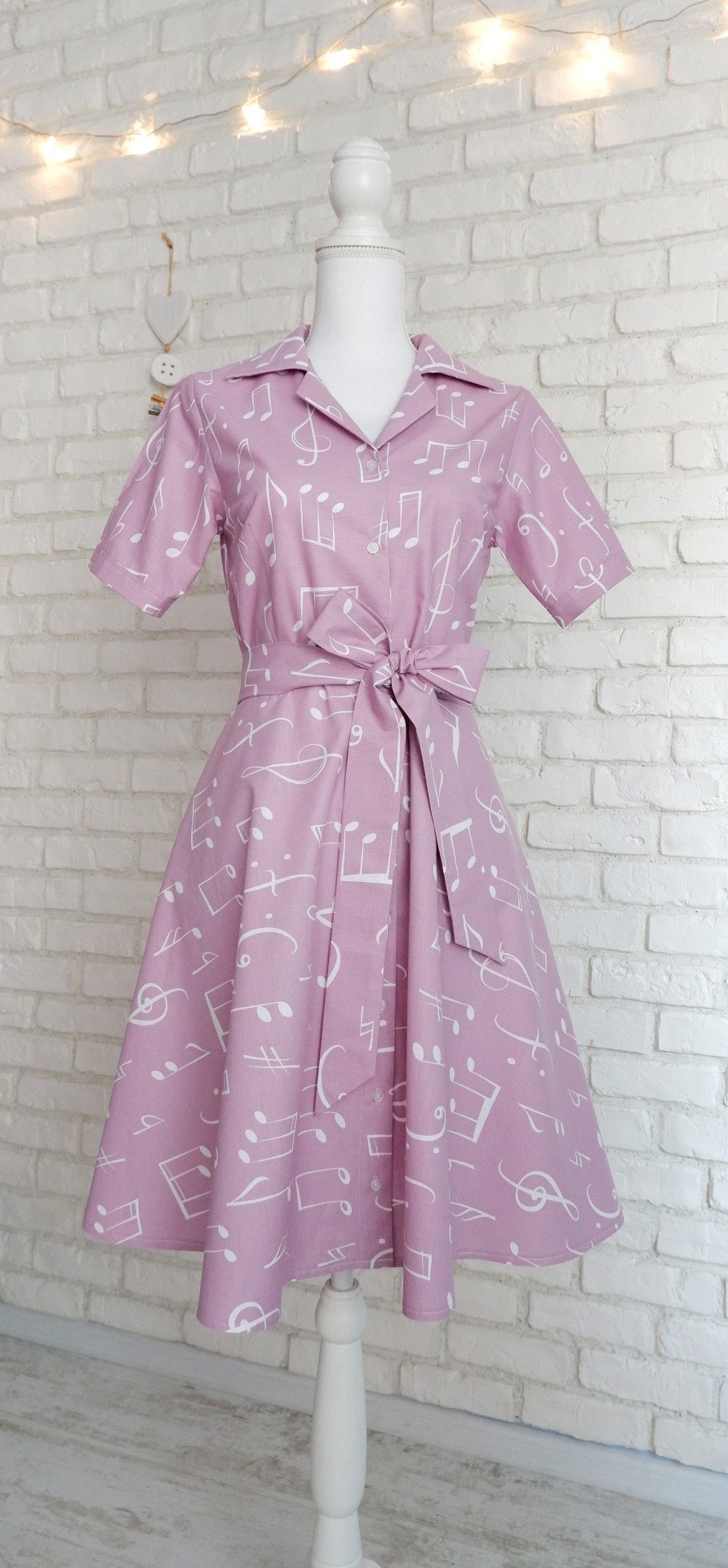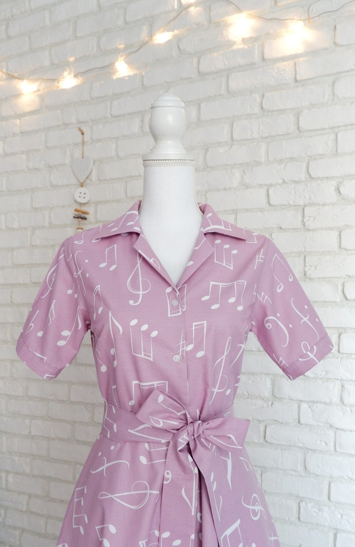 Rochie Camasa cu Revere Lila cu Note Muzicale