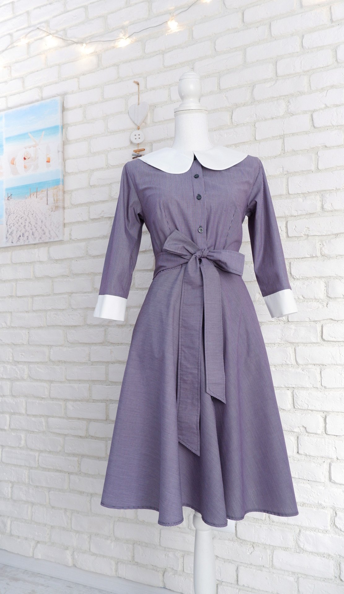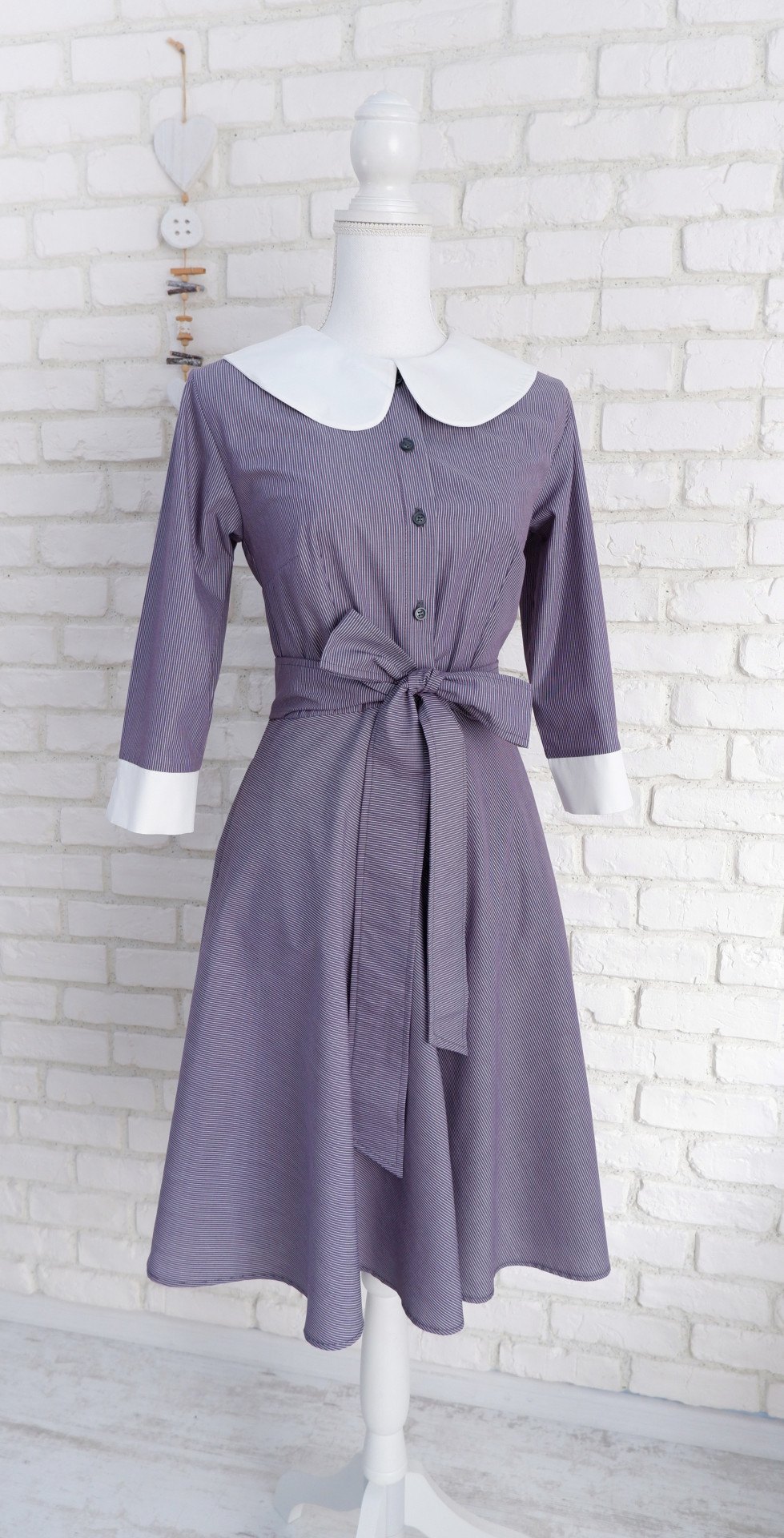 Rochie camasa cu guler mare rotund, un model cu aer retro, creata pe masurile tale, din materiale naturale.
