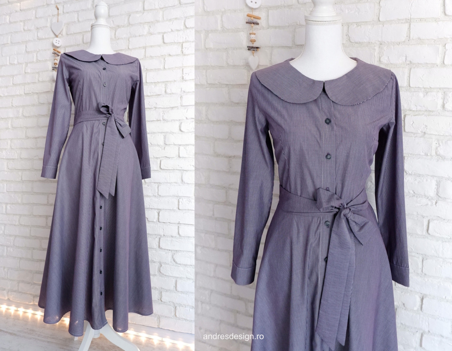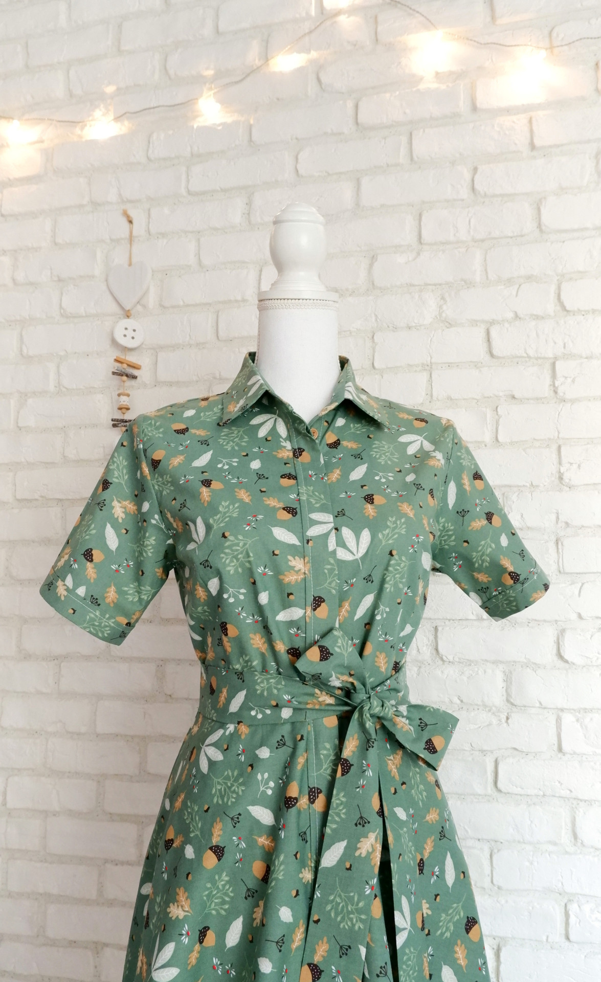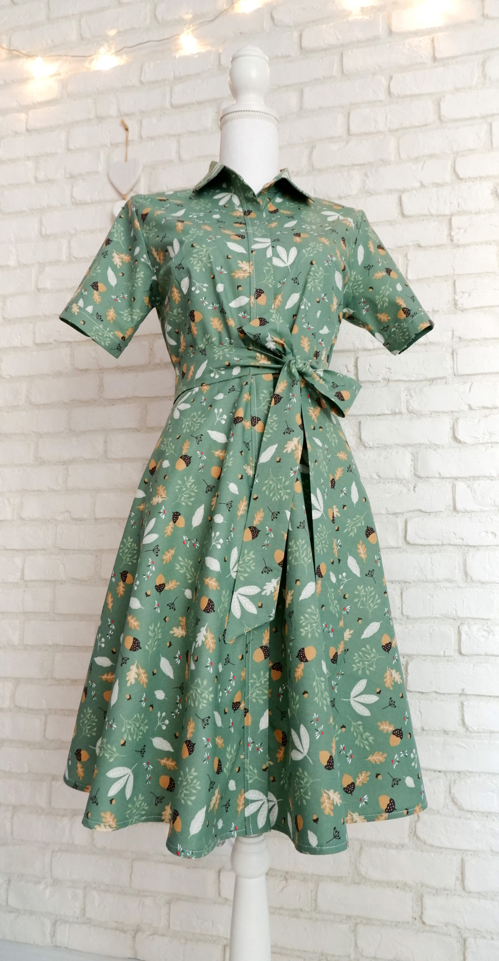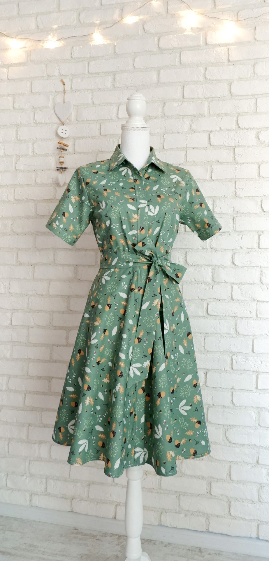 Rochie camasa cu imprimeu de toamna, creata pe masurile tale, din panza naturala de bumbac.
